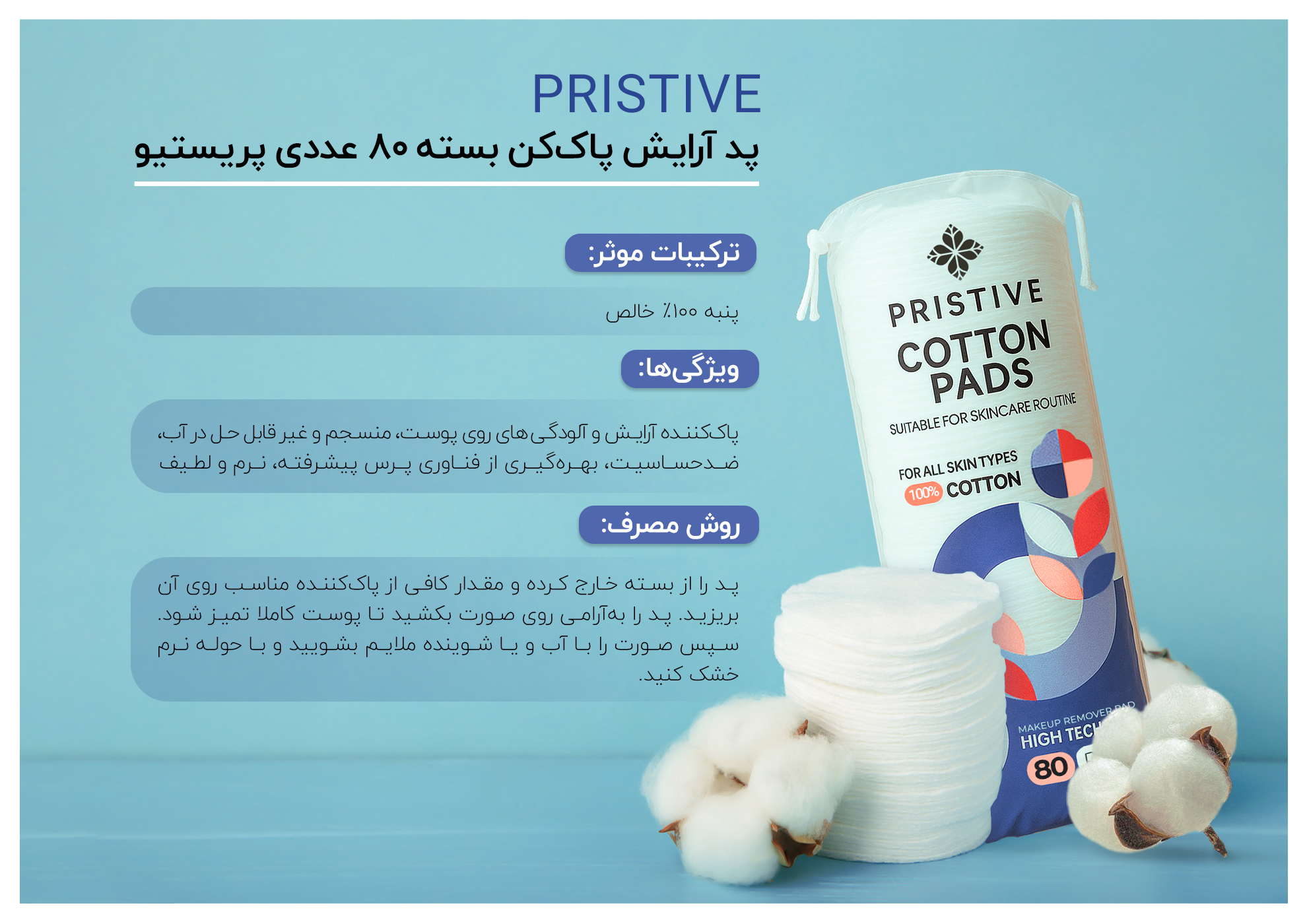 پد آرایش پاک کن پریستیو بسته 80عددی